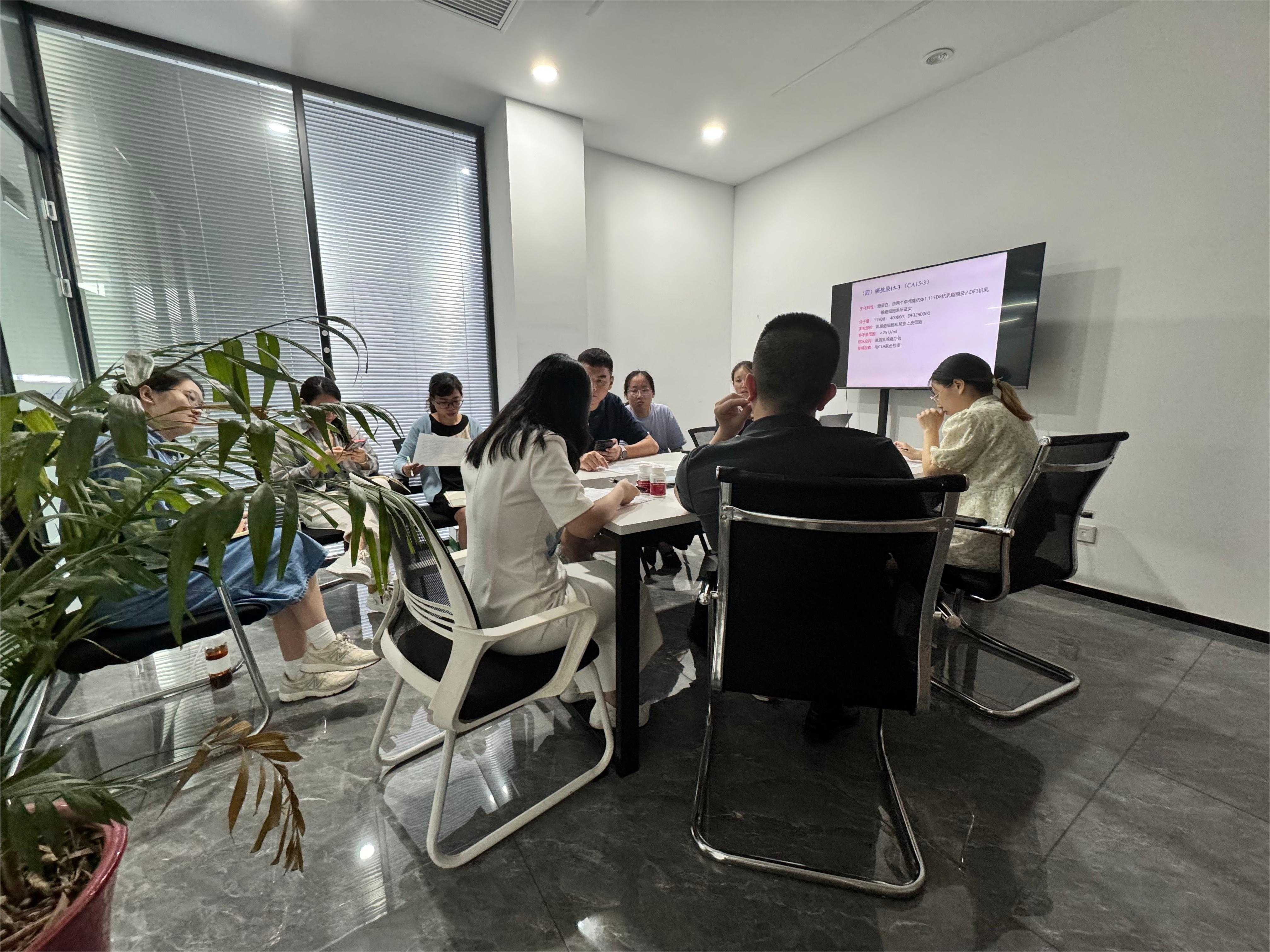 Mødet blev ledet af Dr. Li, Chief Research and Development Officer for Bioteke, og deltaget af repræsentanter fra selskabets kerneforsknings- og udviklingsteam og marketingafdeling. Under mødet introducerede Dr. Li de tekniske principper og udviklingsproces for tumormarkørdetektionssættet i detaljer og delte de nyeste forskningsresultater.