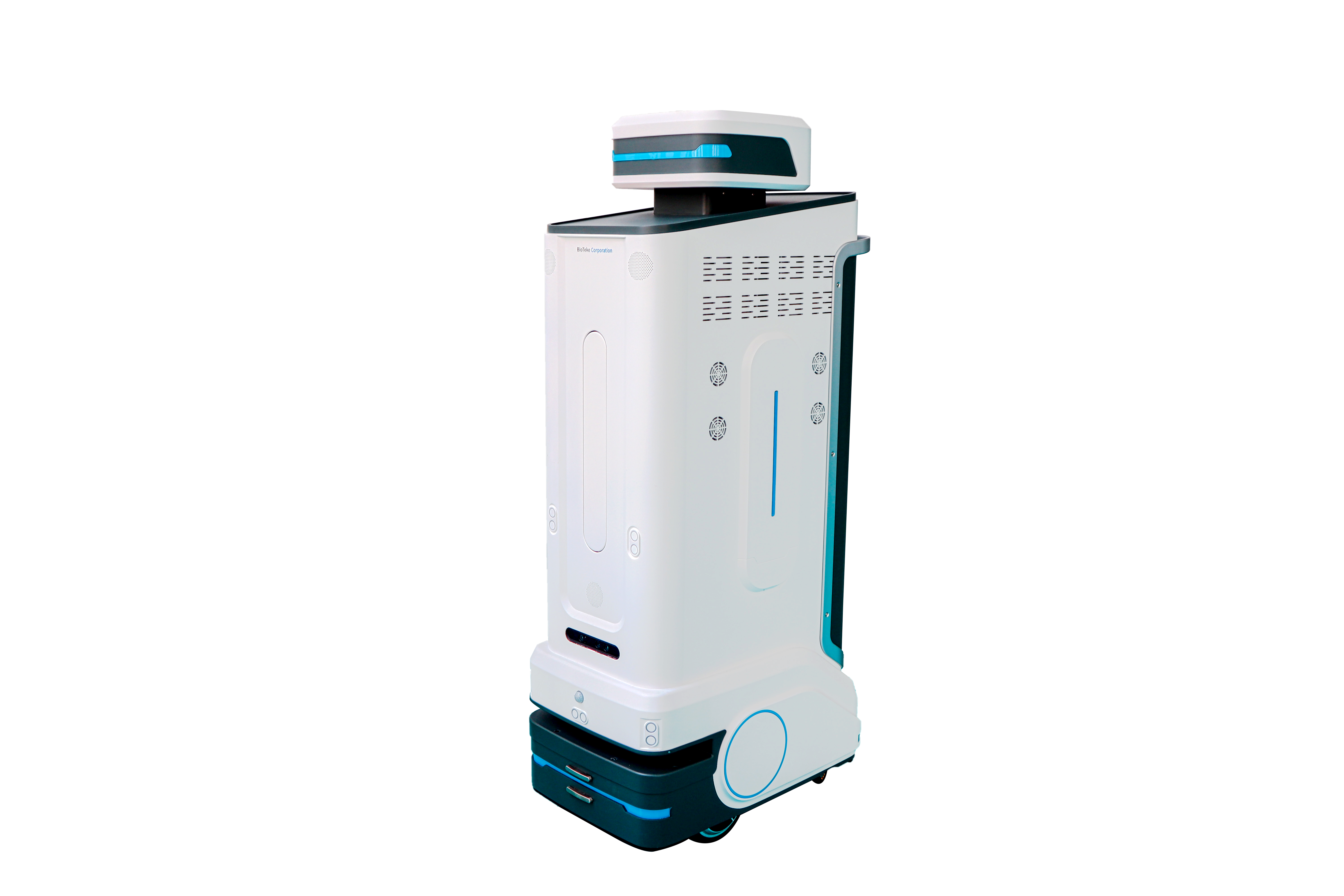 Anvendelige steder: Den automatiske desinfektionsrobot er velegnet til biosikkerhedslaboratorier, GMP -workshops, infektionssygdomsrum, skoler, hospitaler, fødevarevirksomheder, forskningsinstitutter og andre steder, hvor der kræves regelmæssig desinfektion af rummet. Desinfektionsmidlet af desinfektionsroboten sprøjtes i form af nano-mikron flydende perler for at opnå en 360 ° cirkulær desinfektionseffekt på bakteriesporer 6log uden blindgyde.